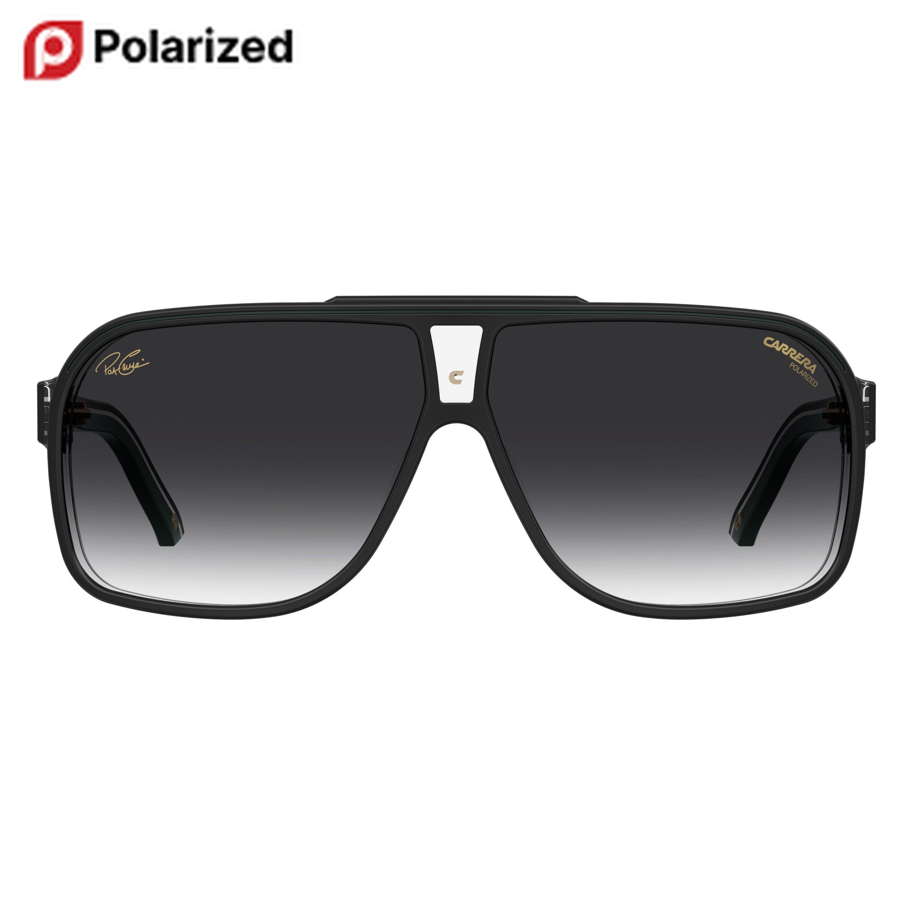 One of Carrera's best-selling styles and now elevated as part of the Pat Cummins Signature Collection. The Grand Prix 2 sunglasses combine a functional, urban aesthetic with the label's esteemed sports heritage and a pinch of boldness to create the ultimate eyewear accessory. The sizeable, regular-cut silhouette is crafted from double-layered acetate, and a new green temple creating a pleasing juxtaposition of colours — with the internal writing PAT CUMMINS SELECTION identifying the model. The square shape is punctuated with a series of thoughtful details that continue the label's revered legacy while making a subtle style statement — namely the 'C' monogram emblazoned front and centre on the nose bridge, and a metal logo plaque applied on each temple. Complete with gradient polarised lens giving increased comfort and style, completed with the signature printed in gold making the glasses immediately recognisable and exclusive to the Pat Cummins signature collection. These are for the wearer with the state of mind and allure of a competitive soul who dares to make a difference.